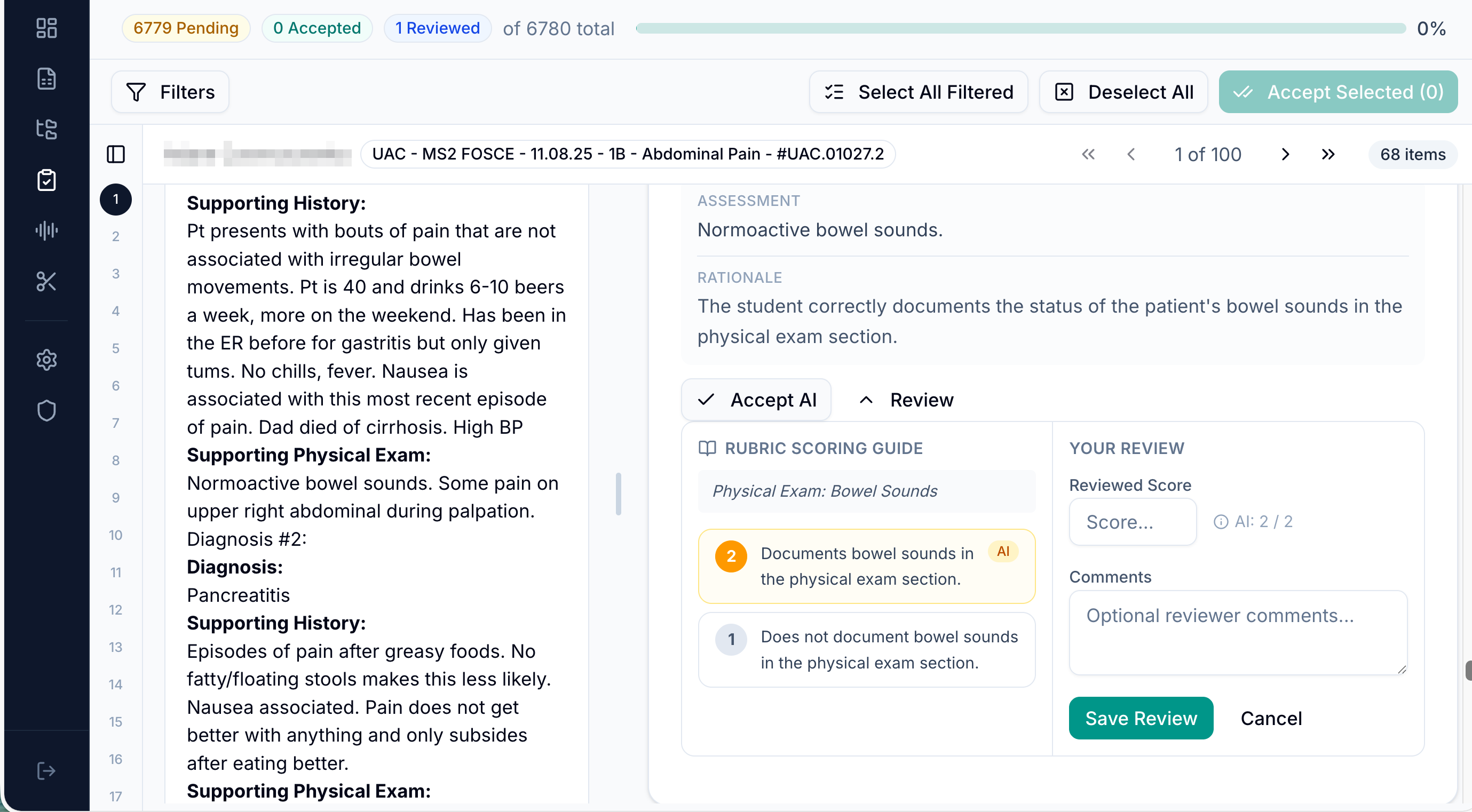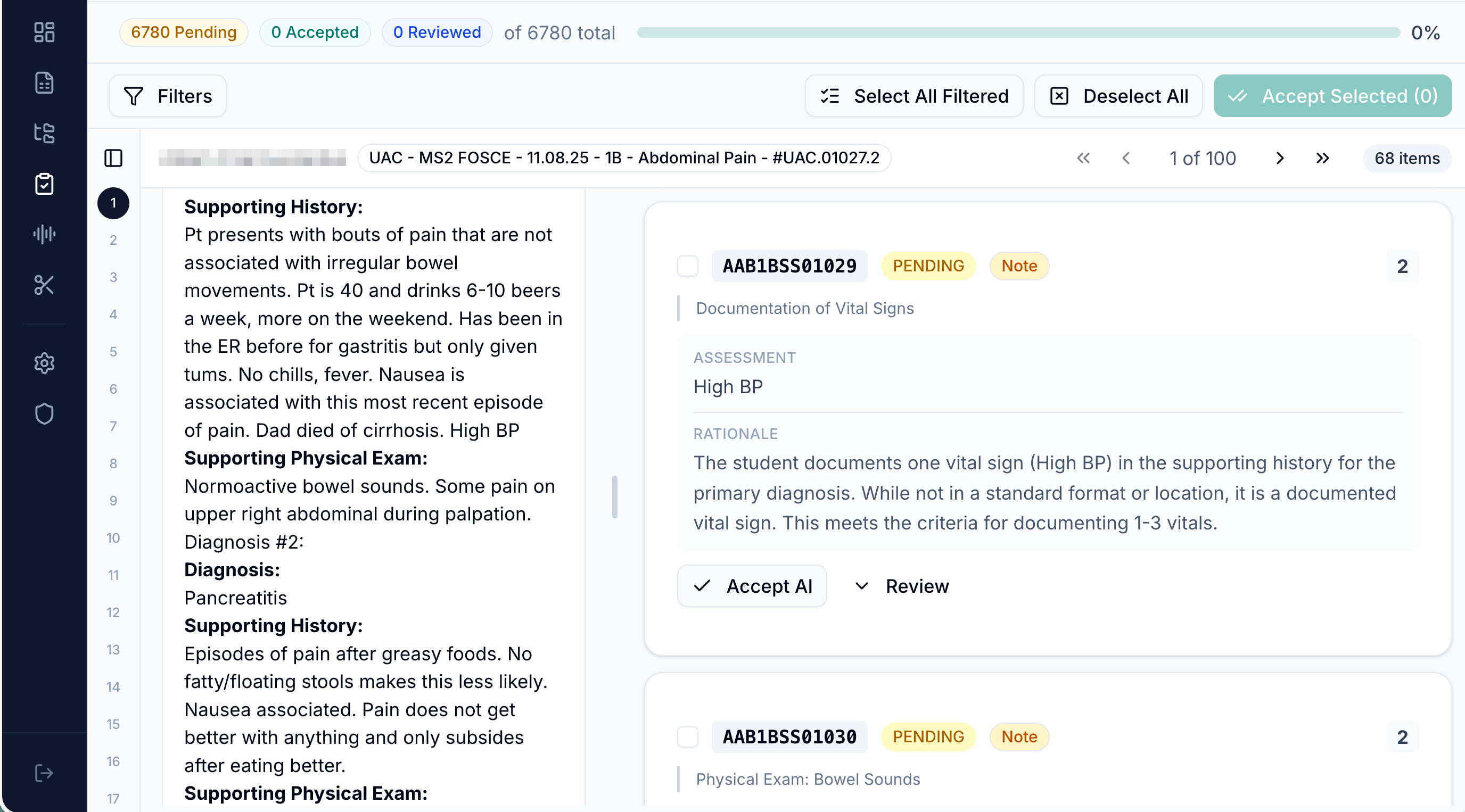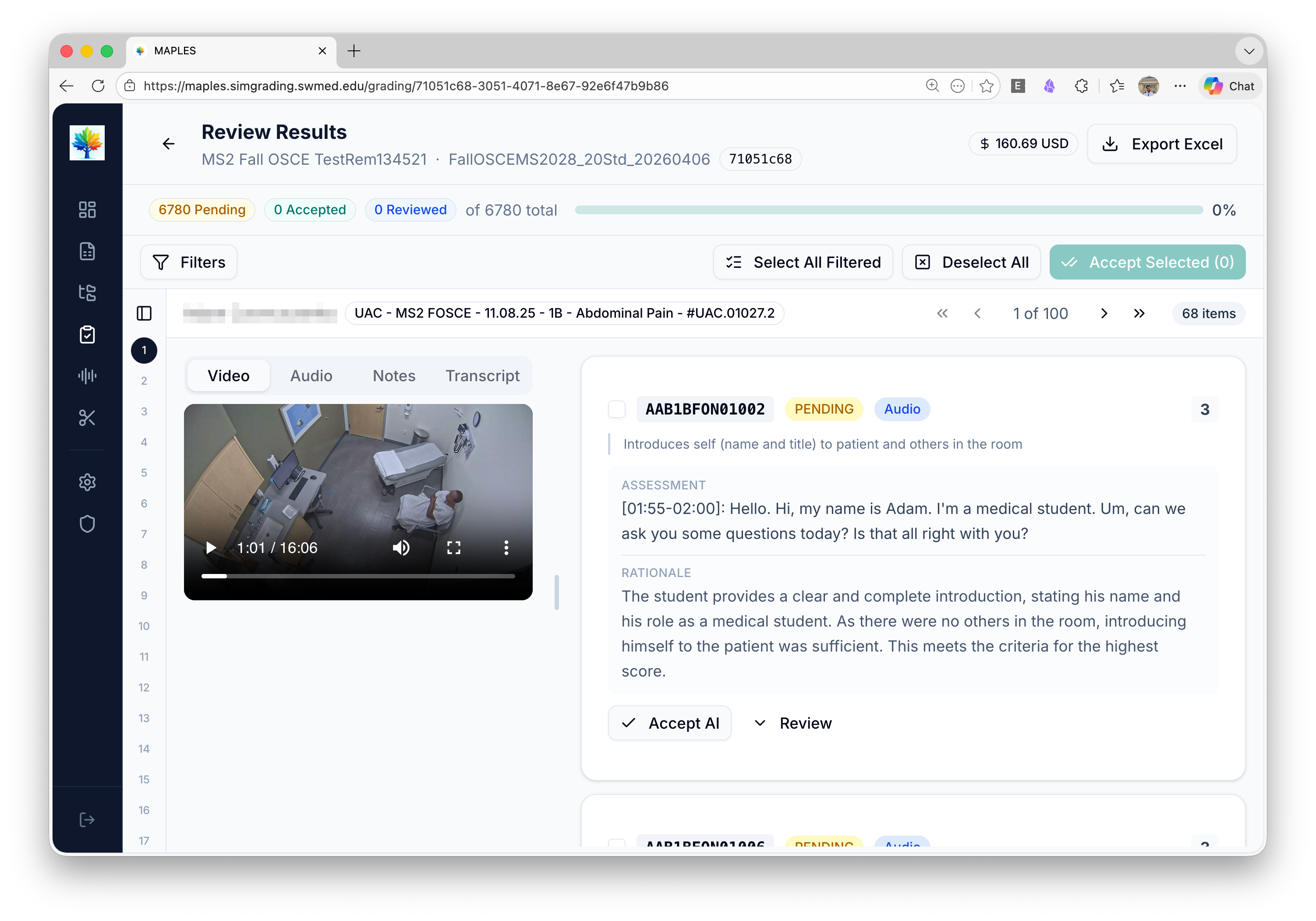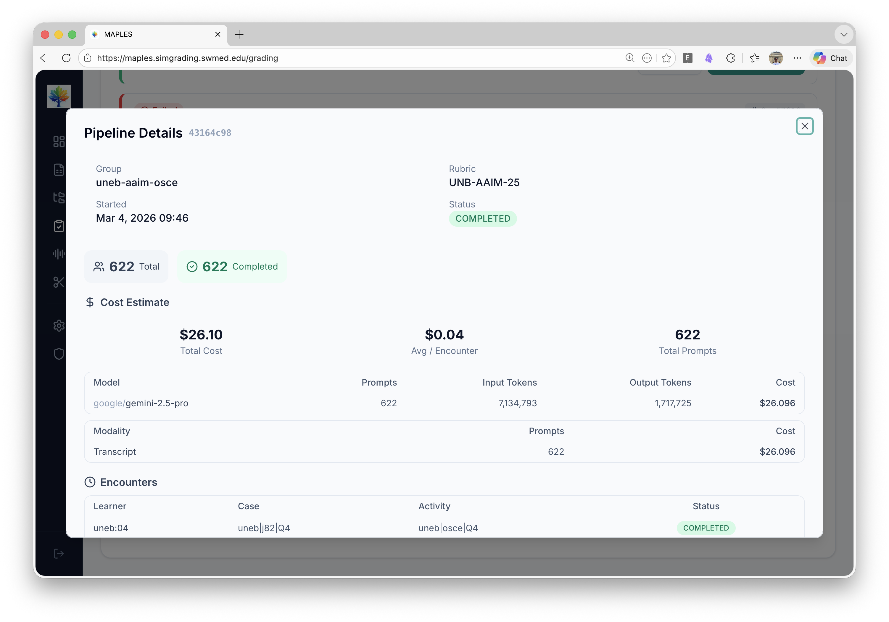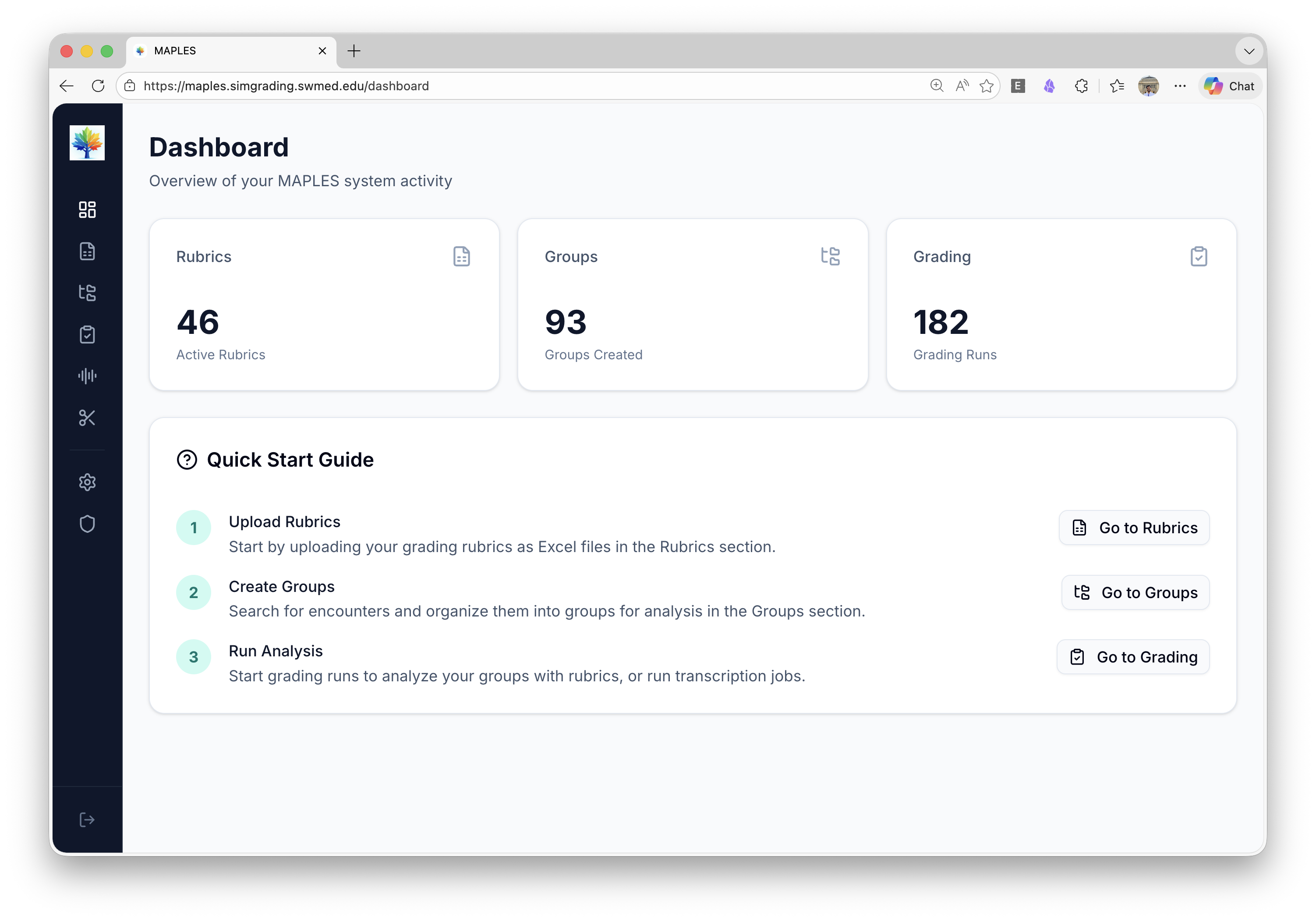 Screenshots, architecture diagrams, and published figures from the MAPLES AI grading platform and the OSCE simulation environments it serves.